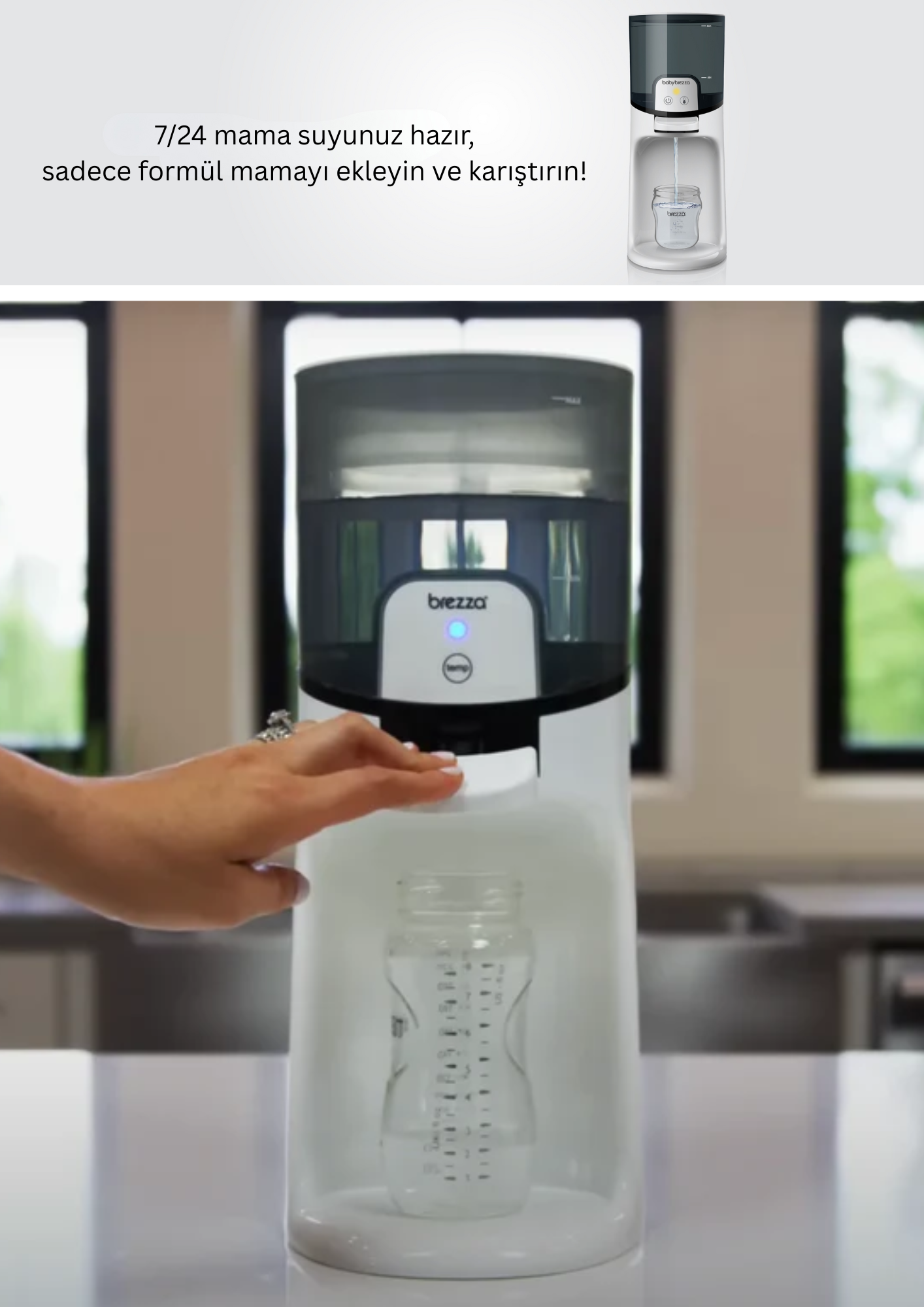 Baby Brezza Instant Warmer Bebek Mama Suyu Otomatı ve Biberon Suyu Isıtıcısı ılık biberonları tek adımda ve anında hazırlamanın devrim niteliğinde bir yolunu sunar. Instant Warmer Bebek Mama Suyu Otomatı ve Biberon Suyu Isıtıcısı, 24 saat boyunca talep üzerine ılık su verir ve seçilen sıcaklığı gün boyu ve gece boyunca sabit tutar; böylece ihtiyaç duyduğunuz her an kullanıma hazırdır. Geleneksel biberon ısıtıcılarında olduğu gibi 3–5 dakika beklemeye son. Sadece kolu bastırarak biberonunuza ılık suyu doldurun, mamayı ekleyin, karıştırın ve saniyeler içinde bebeğinizi besleyin. Bebeğinizin tercihine göre 3 farklı sıcaklık ayarı arasından seçim yapabilirsiniz: Vücut Sıcaklığı, Vücut Sıcaklığından Daha Sıcak ve Oda Sıcaklığı. Hava geçirmez su haznesi yaklaşık 1.5 litre kapasiteye sahiptir ve bir günlük biberon ihtiyacı için yeterlidir. Instant Warmer Bebek Mama Suyu Otomatı ve Biberon Suyu Isıtıcısı tüm marka ve tipteki biberonlarla uyumludur.